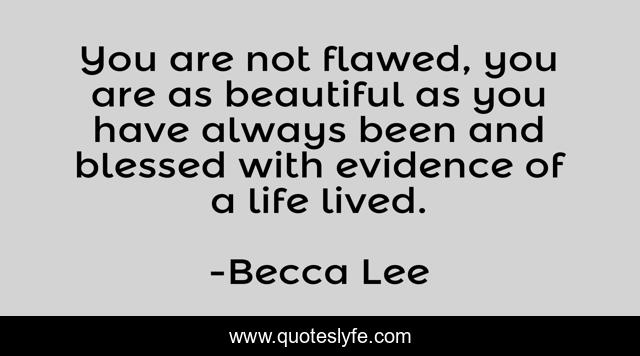 This page presents the quote "You are not flawed, you are as beautiful as you have always been and blessed with evidence of a life lived.". Author of this quote is Becca Lee. This quote is about broken, imperfect, flawed,.