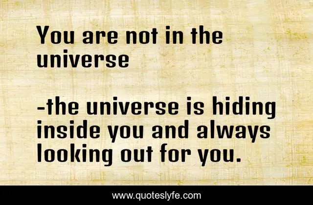 "the universe is hiding inside you and always looking out for you. Quotes." Quoteslyfe.com, 2025. Fri. 05 Dec. 2025. <https://www.quoteslyfe.com/quote/You-are-not-in-the-universe-169816>.