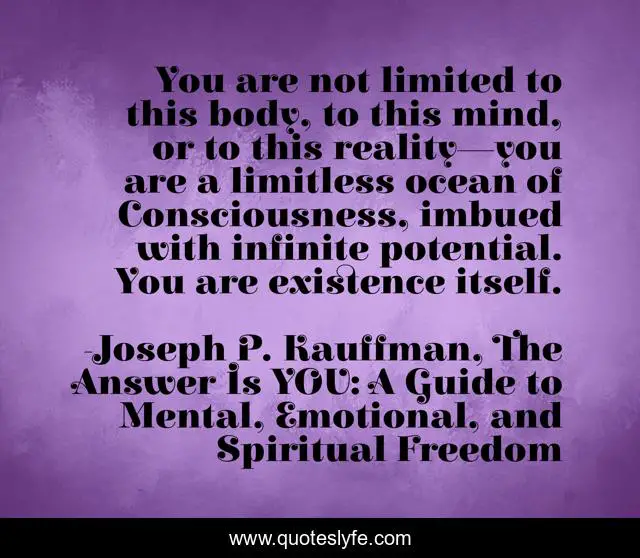 "Joseph P. Kauffman, The Answer Is YOU: A Guide to Mental, Emotional, and Spiritual Freedom Quotes." Quoteslyfe.com, 2025. Mon. 08 Dec. 2025. <https://www.quoteslyfe.com/quote/You-are-not-limited-to-this-body-13899>.