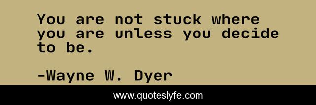This page presents the quote "You are not stuck where you are unless you decide to be.". Author of this quote is Wayne W. Dyer. This quote is about be-yourself, self-determination,.