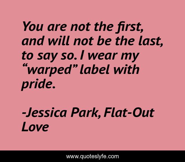 This page presents the quote "You are not the first, and will not be the last, to say so. I wear my “warped” label with pride.". Author of this quote is Jessica Park, Flat-Out Love. .