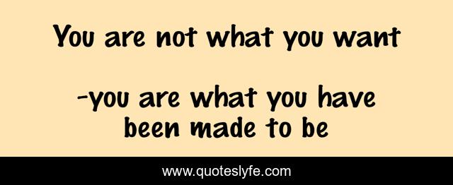 "you are what you have been made to be Quotes." Quoteslyfe.com, 2025. Fri. 05 Dec. 2025. <https://www.quoteslyfe.com/quote/You-are-not-what-you-want-106904>.