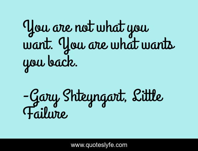 "Gary Shteyngart, Little Failure Quotes." Quoteslyfe.com, 2025. Fri. 05 Dec. 2025. <https://www.quoteslyfe.com/quote/You-are-not-what-you-want-You-238971>.