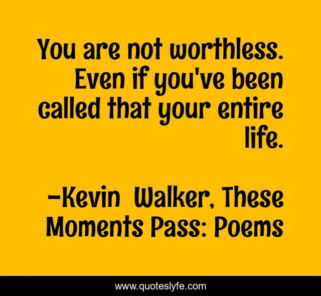 "Kevin Walker, These Moments Pass: Poems Quotes." Quoteslyfe.com, 2025. Fri. 05 Dec. 2025. <https://www.quoteslyfe.com/quote/You-are-not-worthless-Even-if-you-25078>.