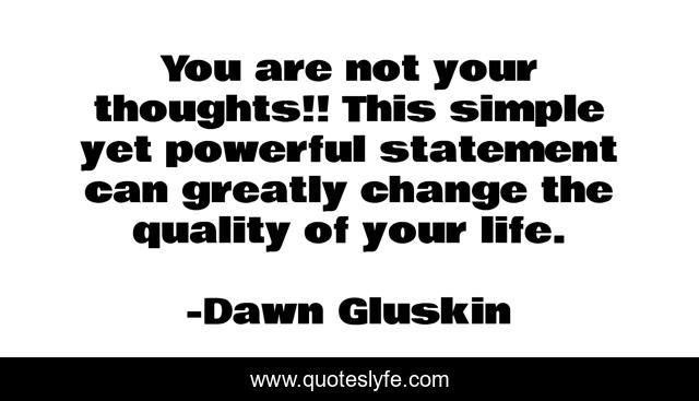 This page presents the quote "You are not your thoughts!! This simple yet powerful statement can greatly change the quality of your life.". Author of this quote is Dawn Gluskin. This quote is about self-love, love, mind, zen, ego, identity, truth, thoughts, affection,.