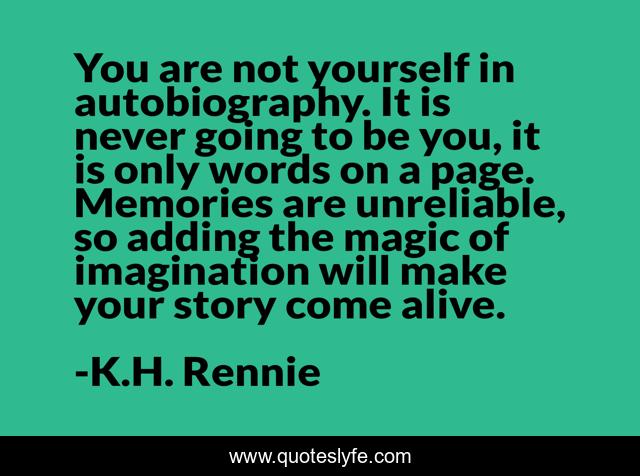 This page presents the quote "You are not yourself in autobiography. It is never going to be you, it is only words on a page. Memories are unreliable, so adding the magic of imagination will make your story come alive.". Author of this quote is K.H. Rennie. This quote is about autobiography, memoir,.