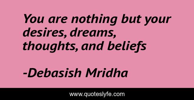 "Debasish Mridha Quotes." Quoteslyfe.com, 2025. Sun. 07 Dec. 2025. <https://www.quoteslyfe.com/quote/You-are-nothing-but-your-desires-dreams-137943>.