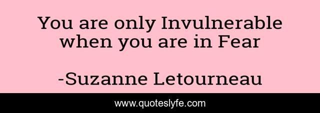 This page presents the quote "You are only Invulnerable when you are in Fear". Author of this quote is Suzanne Letourneau. This quote is about freedom, vulnerability, authenticity, wisdom,.