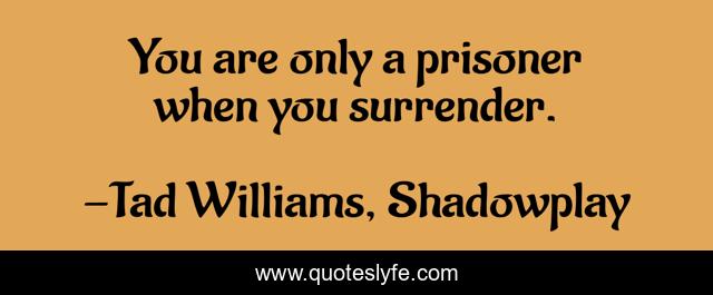 This page presents the quote "You are only a prisoner when you surrender.". Author of this quote is Tad Williams, Shadowplay. This quote is about prisoner, surrender, determination, hope,.