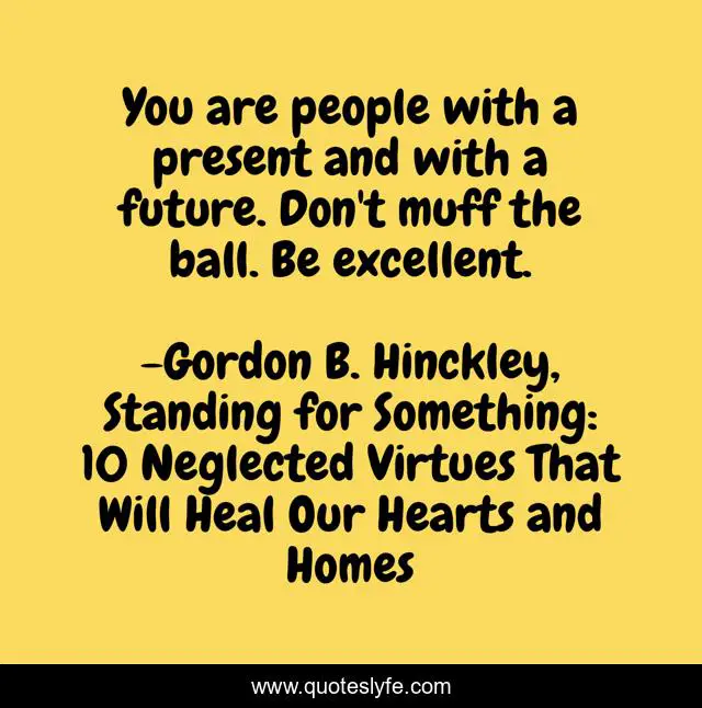 "Gordon B. Hinckley, Standing for Something: 10 Neglected Virtues That Will Heal Our Hearts and Homes Quotes." Quoteslyfe.com, 2025. Sat. 06 Dec. 2025. <https://www.quoteslyfe.com/quote/You-are-people-with-a-present-and-218155>.