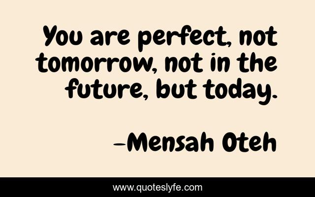 "Mensah Oteh Quotes." Quoteslyfe.com, 2025. Fri. 05 Dec. 2025. <https://www.quoteslyfe.com/quote/You-are-perfect-not-tomorrow-not-in-49255>.