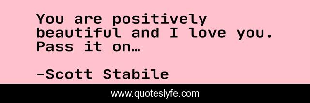 This page presents the quote "You are positively beautiful and I love you. Pass it on…". Author of this quote is Scott Stabile. This quote is about beautiful, kindness,.