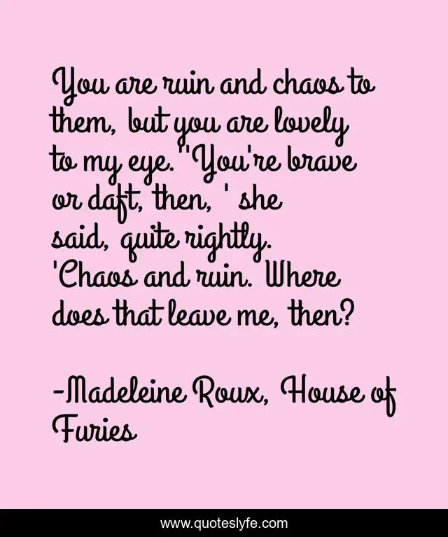 "Madeleine Roux, House of Furies Quotes." Quoteslyfe.com, 2025. Fri. 05 Dec. 2025. <https://www.quoteslyfe.com/quote/You-are-ruin-and-chaos-to-them-60970>.