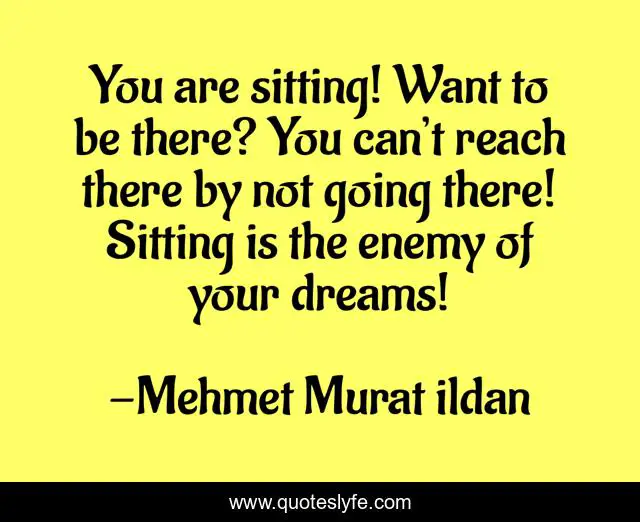 This page presents the quote "You are sitting! Want to be there? You can’t reach there by not going there! Sitting is the enemy of your dreams!". Author of this quote is Mehmet Murat ildan. This quote is about enemy, murat-ildan, sit, reach, sitting, dreams,.