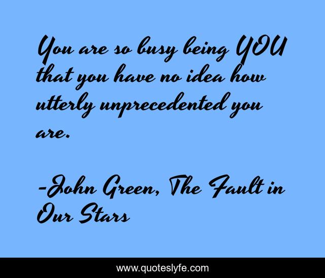 "John Green, The Fault in Our Stars Quotes." Quoteslyfe.com, 2025. Fri. 05 Dec. 2025. <https://www.quoteslyfe.com/quote/You-are-so-busy-being-YOU-that-222345>.