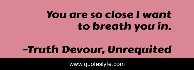 This page presents the quote "You are so close I want to breath you in.". Author of this quote is Truth Devour, Unrequited. This quote is about faith, love, unrequited, hope, lust, sated, romance, dreams, affection,.