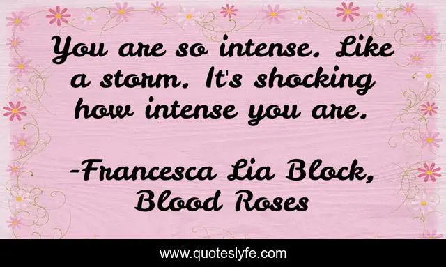 "Francesca Lia Block, Blood Roses Quotes." Quoteslyfe.com, 2025. Fri. 05 Dec. 2025. <https://www.quoteslyfe.com/quote/You-are-so-intense-Like-a-storm-16383>.