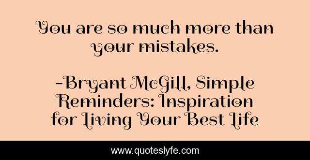 This page presents the quote "You are so much more than your mistakes.". Author of this quote is Bryant McGill, Simple Reminders: Inspiration for Living Your Best Life. This quote is about greater, wisdom, spirituality, mistakes, inspirational, enthusiasm,.