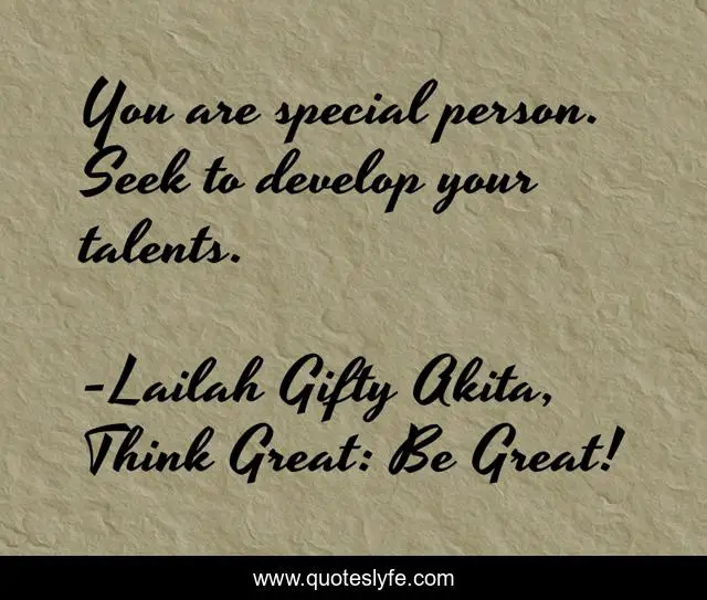 "Lailah Gifty Akita, Think Great: Be Great! Quotes." Quoteslyfe.com, 2025. Sat. 06 Dec. 2025. <https://www.quoteslyfe.com/quote/You-are-special-person-Seek-to-develop-184378>.