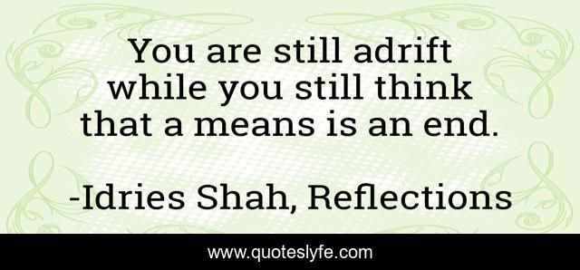 This page presents the quote "You are still adrift while you still think that a means is an end.". Author of this quote is Idries Shah, Reflections. This quote is about ends, lost, means-and-ends,.