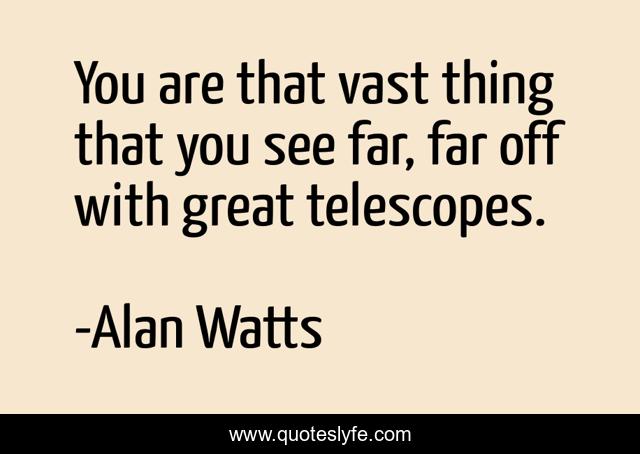 This page presents the quote "You are that vast thing that you see far, far off with great telescopes.". Author of this quote is Alan Watts. This quote is about far, see,.
