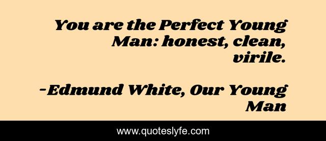 This page presents the quote "You are the Perfect Young Man: honest, clean, virile.". Author of this quote is Edmund White, Our Young Man. This quote is about perfect, young, man,.