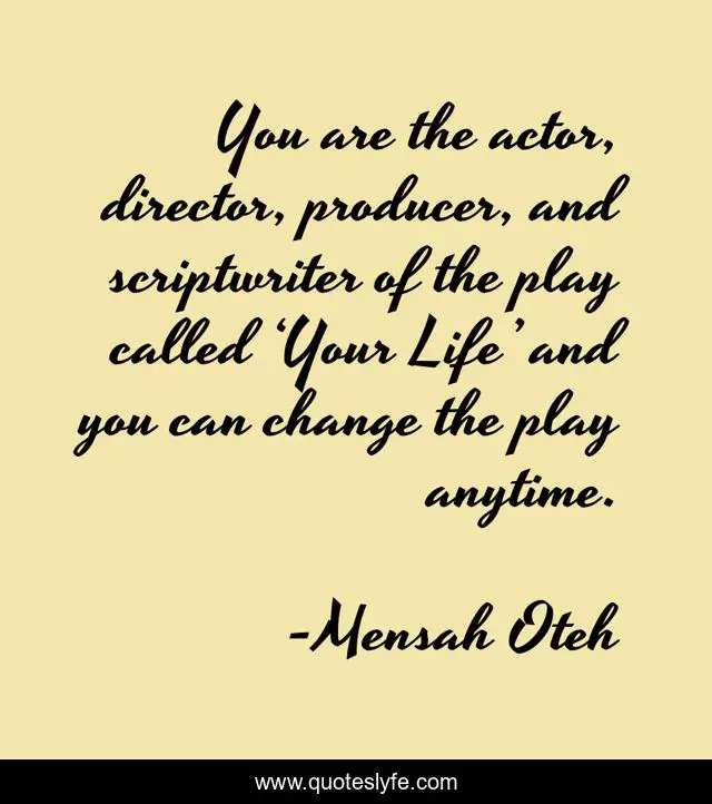 "Mensah Oteh Quotes." Quoteslyfe.com, 2025. Fri. 05 Dec. 2025. <https://www.quoteslyfe.com/quote/You-are-the-actor-director-producer-and-49153>.