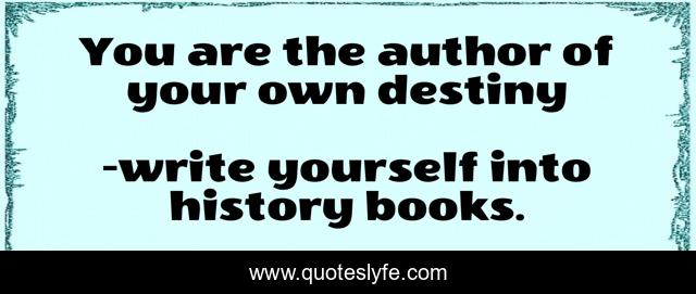This page presents the quote "You are the author of your own destiny". Author of this quote is write yourself into history books.. .