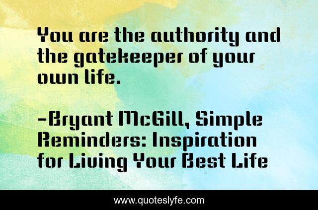 "Bryant McGill, Simple Reminders: Inspiration for Living Your Best Life Quotes." Quoteslyfe.com, 2025. Fri. 05 Dec. 2025. <https://www.quoteslyfe.com/quote/You-are-the-authority-and-the-gatekeeper-256138>.
