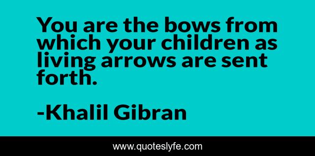 This page presents the quote "You are the bows from which your children as living arrows are sent forth.". Author of this quote is Khalil Gibran. This quote is about living, children,.