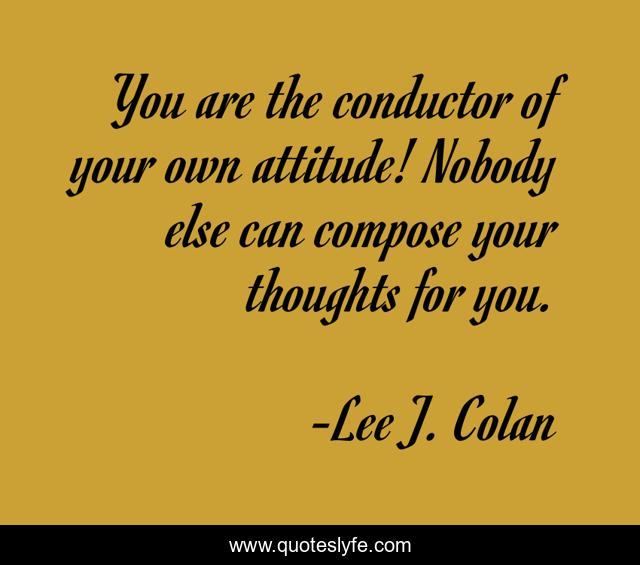 This page presents the quote "You are the conductor of your own attitude! Nobody else can compose your thoughts for you.". Author of this quote is Lee J. Colan. This quote is about thinking, behaviour, attitude, perspective, thoughts,.