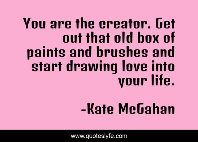 This page presents the quote "You are the creator. Get out that old box of paints and brushes and start drawing love into your life.". Author of this quote is Kate McGahan. This quote is about draw, love, creator, create, paint, affection,.