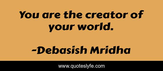 This page presents the quote "You are the creator of your world.". Author of this quote is Debasish Mridha. This quote is about your-world, creator, philosophy, debasish-mridha, quotes, inspirational, enthusiasm, debasish-mridha-m-d,.