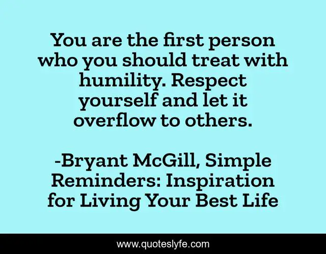 This page presents the quote "You are the first person who you should treat with humility. Respect yourself and let it overflow to others.". Author of this quote is Bryant McGill, Simple Reminders: Inspiration for Living Your Best Life. This quote is about respect, growth, humility, spirituality,.