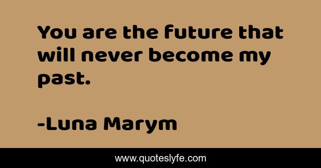 This page presents the quote "You are the future that will never become my past.". Author of this quote is Luna Marym. This quote is about life, trust, love, hope, affection,.