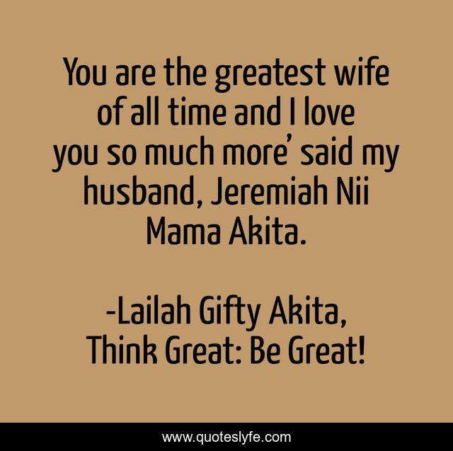 "Lailah Gifty Akita, Think Great: Be Great! Quotes." Quoteslyfe.com, 2025. Sat. 06 Dec. 2025. <https://www.quoteslyfe.com/quote/You-are-the-greatest-wife-of-all-77362>.