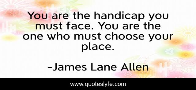 This page presents the quote "You are the handicap you must face. You are the one who must choose your place.". Author of this quote is James Lane Allen. This quote is about self, reliance,.