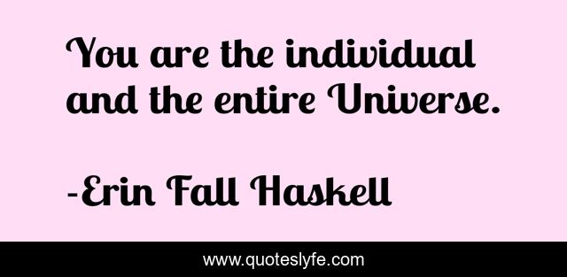 This page presents the quote "You are the individual and the entire Universe.". Author of this quote is Erin Fall Haskell. This quote is about quantum-mechanics, freedom, spirituality, truth, revelation, salvation, metaphysics,.