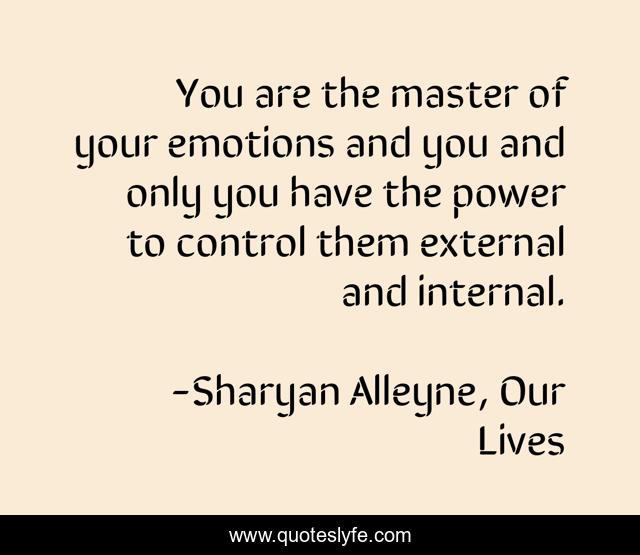 "Sharyan Alleyne, Our Lives Quotes." Quoteslyfe.com, 2025. Sat. 06 Dec. 2025. <https://www.quoteslyfe.com/quote/You-are-the-master-of-your-emotions-212621>.