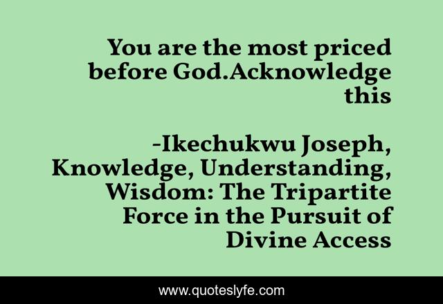 "Ikechukwu Joseph, Knowledge, Understanding, Wisdom: The Tripartite Force in the Pursuit of Divine Access Quotes." Quoteslyfe.com, 2025. Fri. 05 Dec. 2025. <https://www.quoteslyfe.com/quote/You-are-the-most-priced-before-God-142764>.
