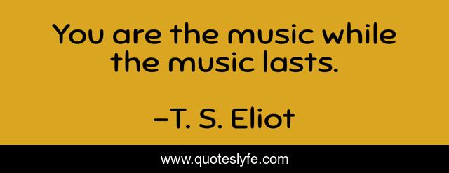 This page presents the quote "You are the music while the music lasts.". Author of this quote is T. S. Eliot. This quote is about while, lasts,.