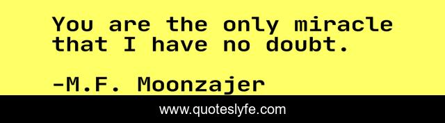 This page presents the quote "You are the only miracle that I have no doubt.". Author of this quote is M.F. Moonzajer. This quote is about doubt, miracle,.