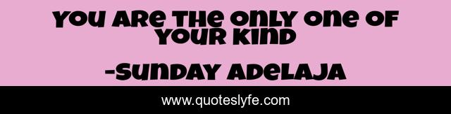 This page presents the quote "You are the only one of your kind". Author of this quote is Sunday Adelaja. This quote is about kind, calling, purpose, fulfillment,.