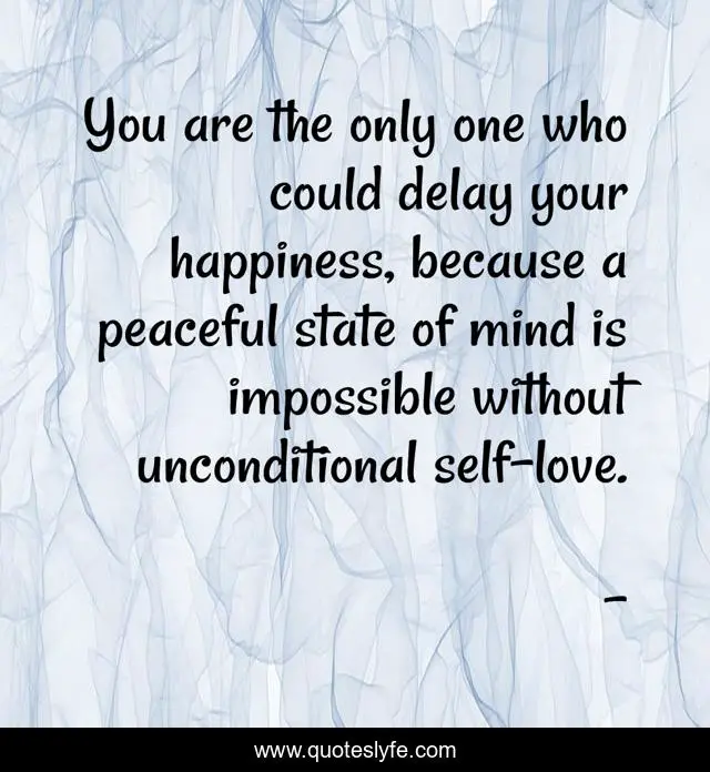 You are the only one who could delay your happiness, because a peaceful state of mind is impossible without unconditional self-love.