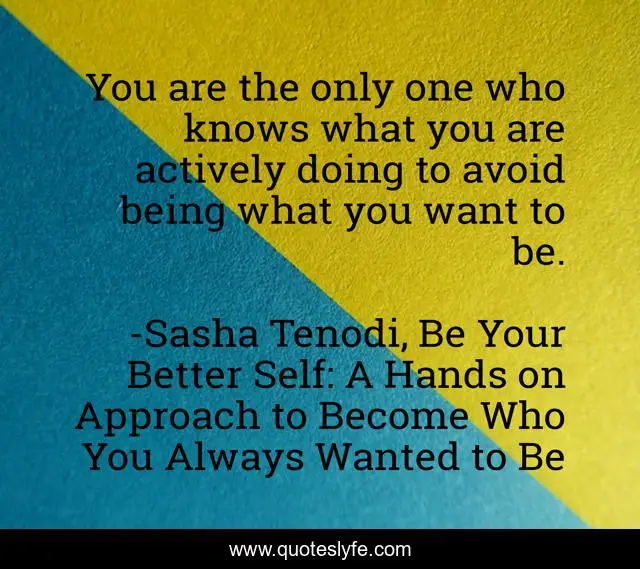 This page presents the quote "You are the only one who knows what you are actively doing to avoid being what you want to be.". Author of this quote is Sasha Tenodi, Be Your Better Self: A Hands on Approach to Become Who You Always Wanted to Be. This quote is about personal-development, self-improvement,.