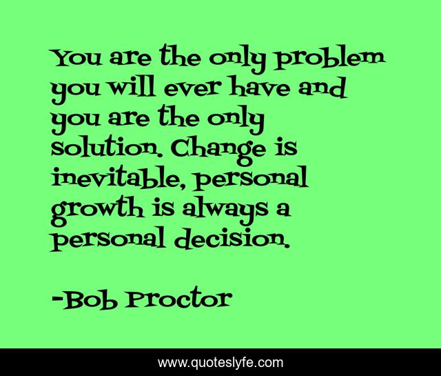 You are the only problem you will ever have and you are the only solution. Change is inevitable, personal growth is always a personal decision.
