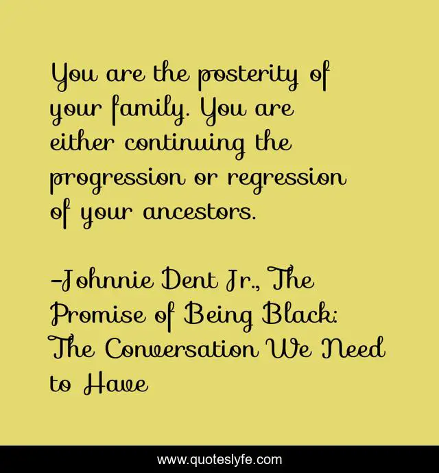 "Johnnie Dent Jr., The Promise of Being Black: The Conversation We Need to Have Quotes." Quoteslyfe.com, 2025. Mon. 08 Dec. 2025. <https://www.quoteslyfe.com/quote/You-are-the-posterity-of-your-family-241828>.