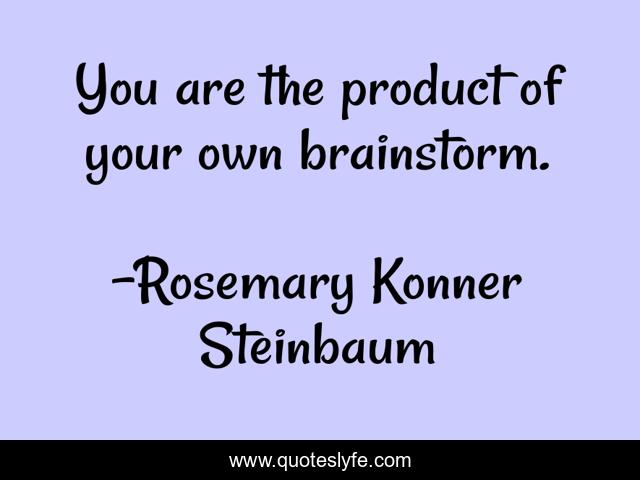 This page presents the quote "You are the product of your own brainstorm.". Author of this quote is Rosemary Konner Steinbaum. This quote is about self, reliance,.