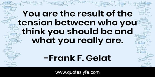 This page presents the quote "You are the result of the tension between who you think you should be and what you really are.". Author of this quote is Frank F. Gelat. This quote is about inpsirational, psychology,.