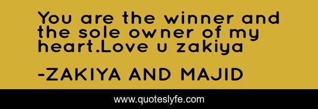 This page presents the quote "You are the winner and the sole owner of my heart.Love u zakiya". Author of this quote is ZAKIYA AND MAJID. This quote is about love, affection,.